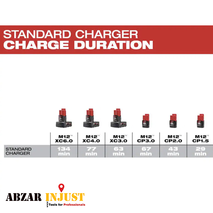 همچنین میتونید مشخصات این شارژر رو در سایت میلواکی هم مشاهده کنید. شارژر m12 میلواکی با ورودی تبدیل شده به 220 ولت یک کالای آکبند و اورجینال بوده و تنها ورودی توسط تیم فنی ابزاراینجاست به روش استاندارد و ایمن به 220 ولت تبدیل شده. تیم فنی ابزاراینجاست برای تبدیل شارژرها از قطعات باکیفیت و اورجینال استفاده میکنه.